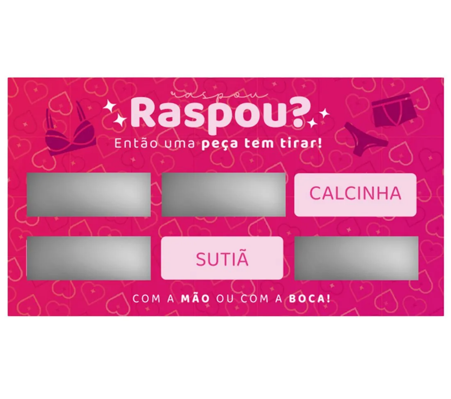 Está sem ideias? Quer inovar e fazer algo novo na relação? A Raspadinha Tire uma Peça de Roupa é ideal para te ajudar. Faça brincadeiras, deixe que a sorte decida por você o que fazer e onde. Viva essa experiência.