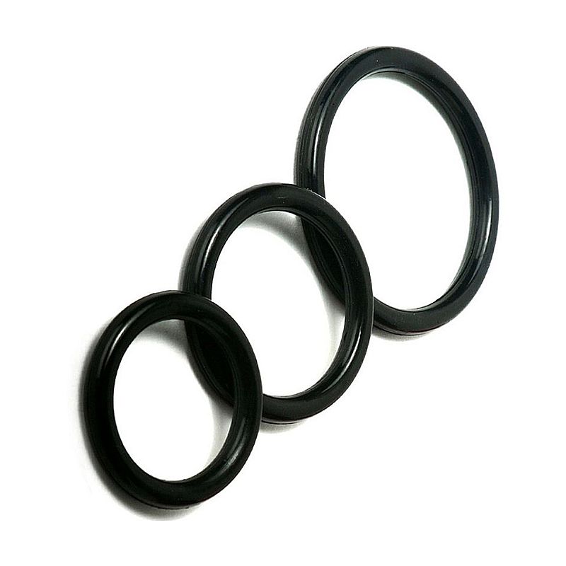 Kit com 3 Anel peniano de borracha preto liso e grosso, material flexível e resistente,
